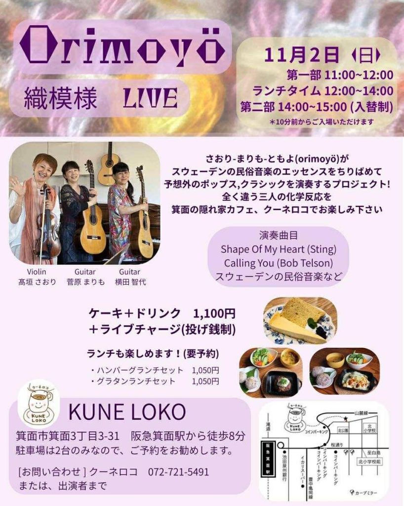 ★11月のコンサート「Orimoyo 織模様 Live」が満席➕2で無事終了致しました。